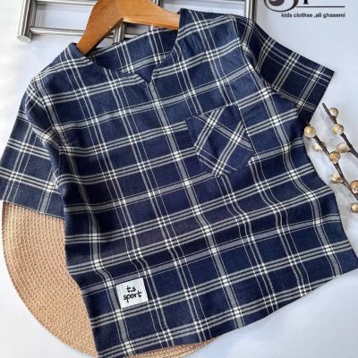 شومیز تک پسرانه یقه کوبایی طرح چهارخونه(3تا13سال)