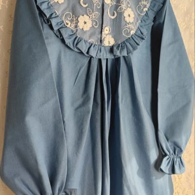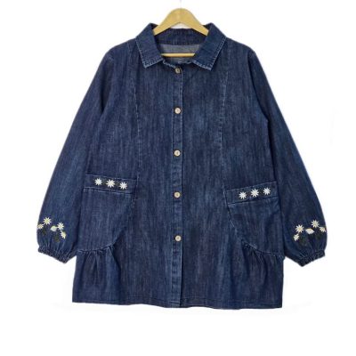 تونیک مانتویی جین گلدوزی طرح بابونه(10 تا 14سال)