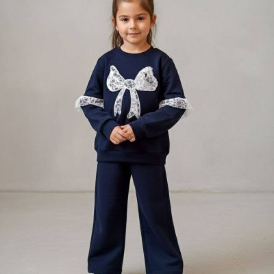 بلوز شلوار دخترانه طرح پاپیون توری(2تا10سال)