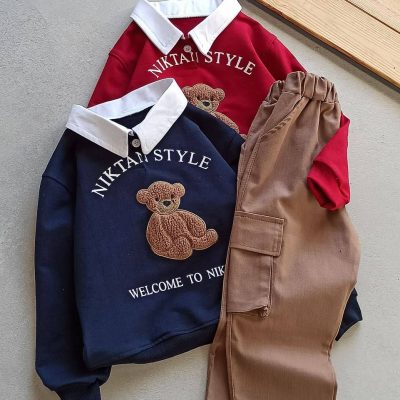 بلوز شلوار کتان پسرانه طرح خرس پشمالو(3تا11سال)