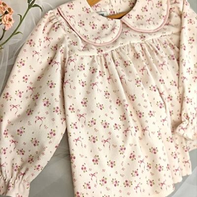 بلوز تک دخترانه یقه تور طرح نرگس (2تا8سال)