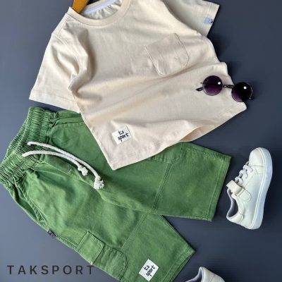 مناسب حدود 3 تا 11 سال جنس تیشرت پنبه جنس شلوارک کتان رنگ بندی بر اساس شلوارک می باشد