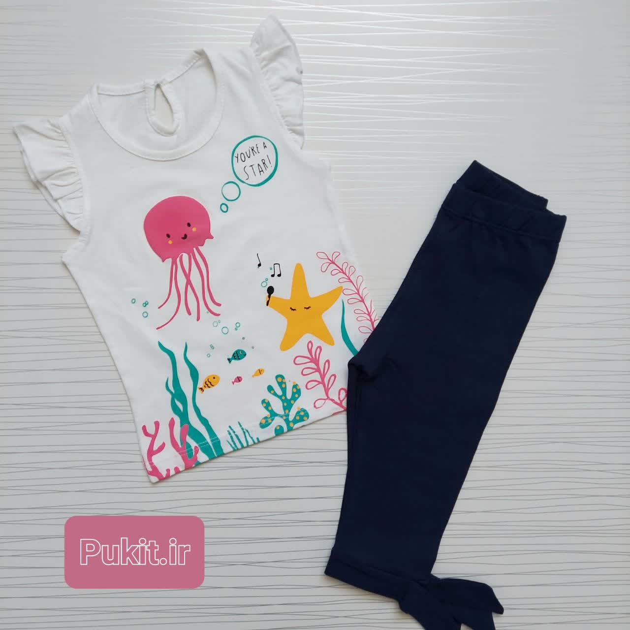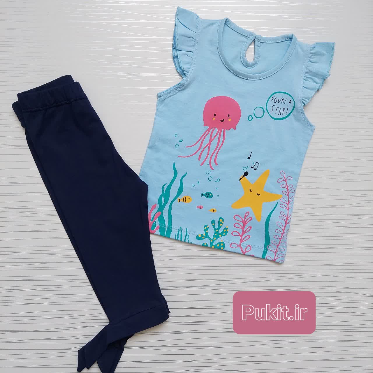 خانه دخترانه تاپ شلوارک دخترانه برمودا طرح دریا (1 تا 4 سال)