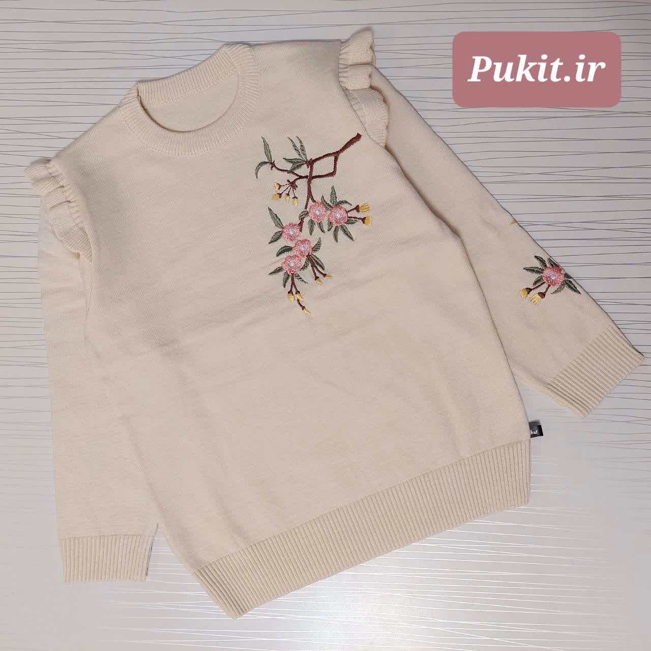 خانه زمستانی بلوز بافت دخترانه گلدوزی شده طرح ثمین(6تا12سال)
