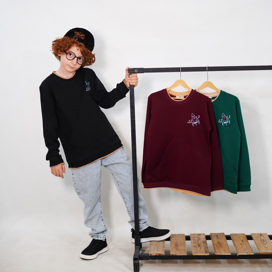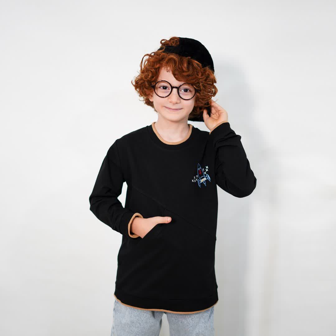 خانه پسرانه بلوز تک پسرانه طرح موشک(6 تا 13 سال)