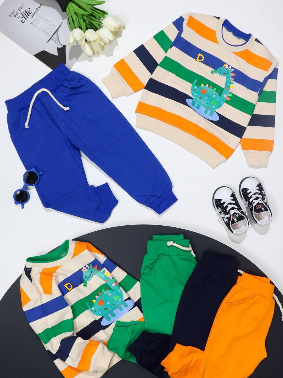 بلوز شلوار پسرانه طرح دایناسور رنگارنگ (1تا7سال)